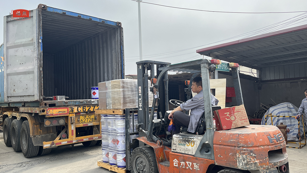 馬達(dá)加斯加客戶是津海公司的老客戶了,6月份該客戶聯(lián)系外貿(mào)經(jīng)理,又訂了一批環(huán)氧地坪漆。今天一早,外貿(mào)部經(jīng)理就早早來到公司,協(xié)助物流部裝車!