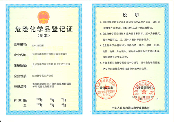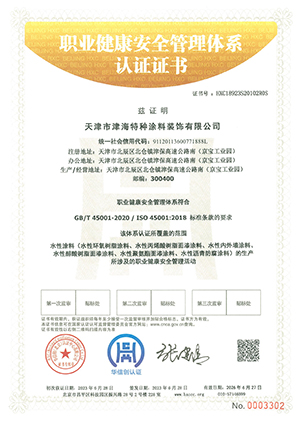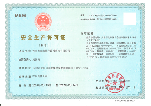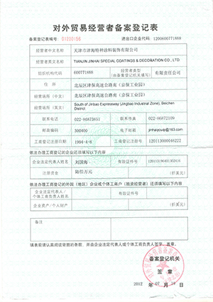 天津市津海特種涂料裝飾有限公司資質(zhì)證書